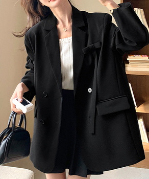 肩パッド入りオーバーサイズジャケット ポケット付き スーツジャケット オフィスカジュアル 風 ベーシックアウター長袖黒アウターおしゃれ 体型カバースーツ黒 通勤大人上品スーツ