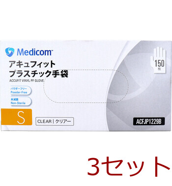業務用 アキュフィット プラスチック手袋 パウダーフリー クリアー S 150枚入 3セット 送料無料