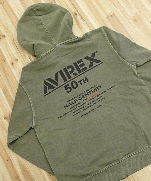送料無料 AVIREX アヴィレックス 50周年 フェイドウォッシュ ジップアップ パーカー FADE WASH ZIP UP PARKA 783-5231009 トップス アビレックス メンズ ブランド