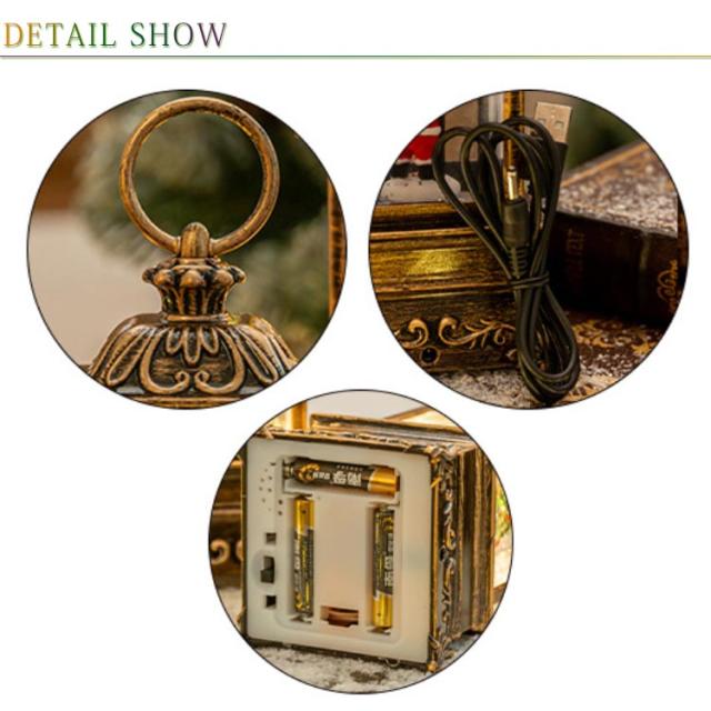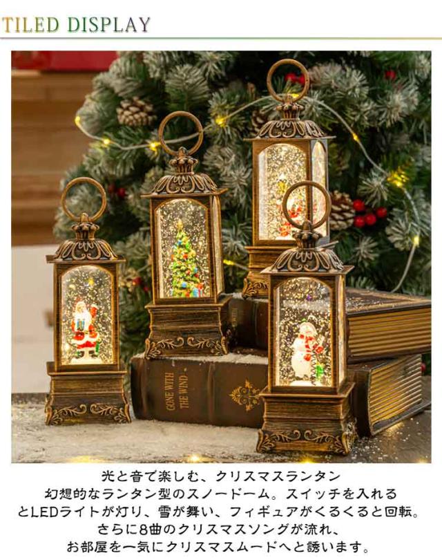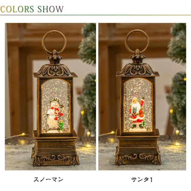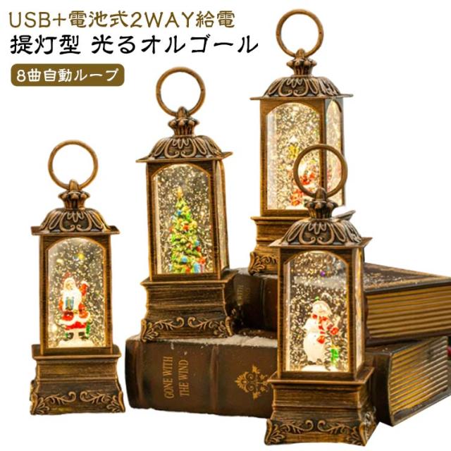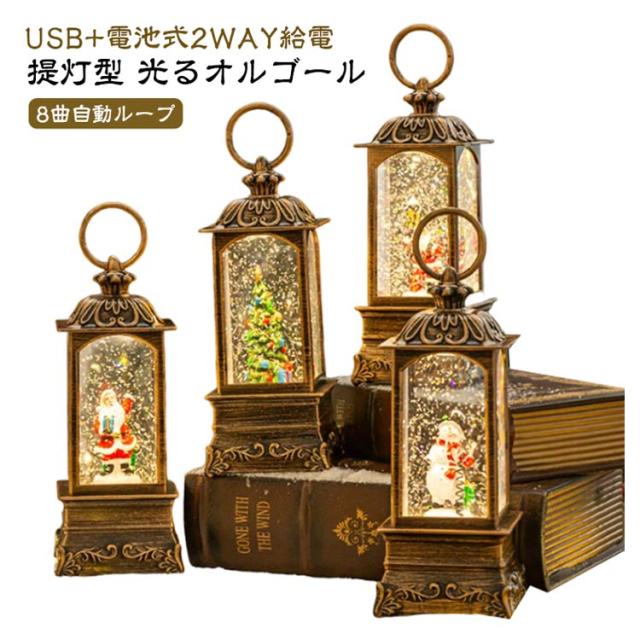 | 提灯型 光るオルゴール 8曲自動ループ USB+電池式2WAY給電 光と音で楽しむ、クリスマスランタン 幻想的なランタン型のスノードーム。スイッチを入れるとLEDライトが灯り、雪が舞い、フィギュアがくるくると回転。さらに8曲のクリスマスソングが流れ、お部屋を一気にクリスマスムードへと誘います。 クリスマスムードをたっぷりに味わえる♪ 透明できれいなクリスマス提灯ライトはスイッチを入れるだけでクリスマスムードをお楽しみ頂けます。 グリッターがキラキラ舞い上がり、真っ暗な場所を輝かせます。 さらに美しさアップさせる内蔵ライト付き スイッチを入れると暖かみのある明かりが灯りながら、手動で水流を起こしてドーム内のスノーラメがキラキラと降り注いで美しく舞い上がります。 クリスマス雰囲気なパーケージ、 必ず喜ばれるクリスマスプレゼント 提灯デザイン、 お子様も大喜びの卓上ミニ提灯。 <お勧めポイント> ●POINT 01 ランタン型でクラシカルな雰囲気に 温かみのあるランタン型のフォルムは、まるで物語のワンシーンのよう。飾るだけでお部屋がぐっとクリスマスらしく彩られます。 ●POINT 02 光と動きが生み出す幻想的な世界 スイッチを入れるとLEDライトが点灯し、きらめく雪が舞う中でスノーマンとトナカイが回転。動きのあるクリスマスの風景を楽しめます。 ●POINT 03 8曲のクリスマスソングを内蔵 1.Jingle bell 2. We wish you a merry christmas 3.Silent night 4.Deck to the halls 5.Joy to the world 6.The first noel 7. Hark!the herald angel sing 8.oh,christmas tree 人気のクリスマスソングをオルゴールで8曲収録。順番に流れるメロディーが、クリスマスムードを一気に盛り上げます。 ●POINT 04 選べる3つのモード ON1 LEDライト ON2 LEDライト +オルゴール スイッチ/OFF 消灯 単三電池3本(別売)で使用可能。スイッチ1つで3つのモードが選べます。静かに光だけを楽しんだり、音楽と一緒に賑やかに盛り上がったり、シーンに合わせて使い分けてくださいね。 | |