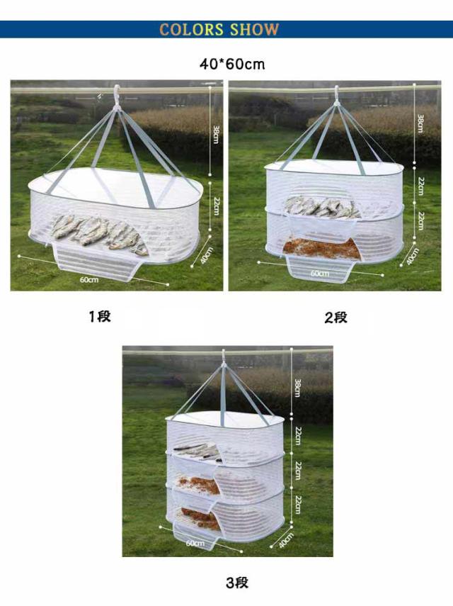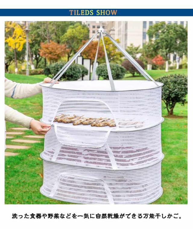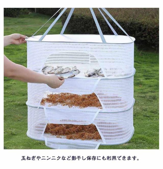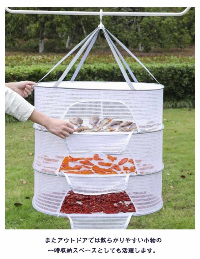 | 【万能干しかご 1/2/3段選べる ファスナー付き安心 折りたたみ式】 洗った食器や野菜などを一気に自然乾燥ができる万能干しかご。 通気性の良い細かいメッシュで害虫を寄せ付けません。 玉ねぎやニンニクなど影干し保存にも利用できます。 使用しない時はコンパクトに折りたたんで収納可能です。 またアウトドアでは散らかりやすい小物の一時収納スペースとしても活躍します。 | |