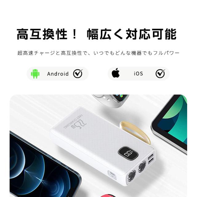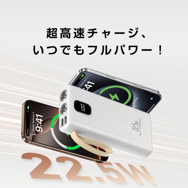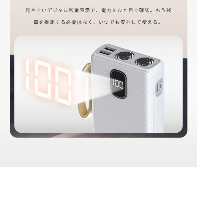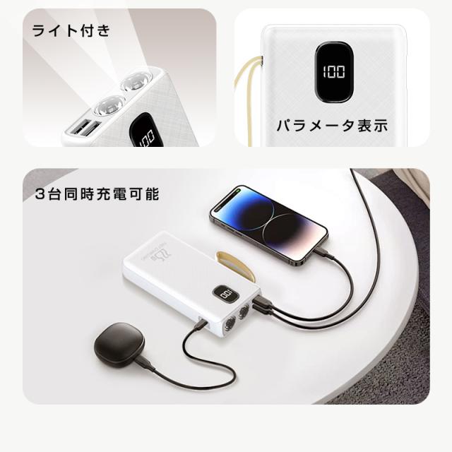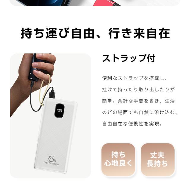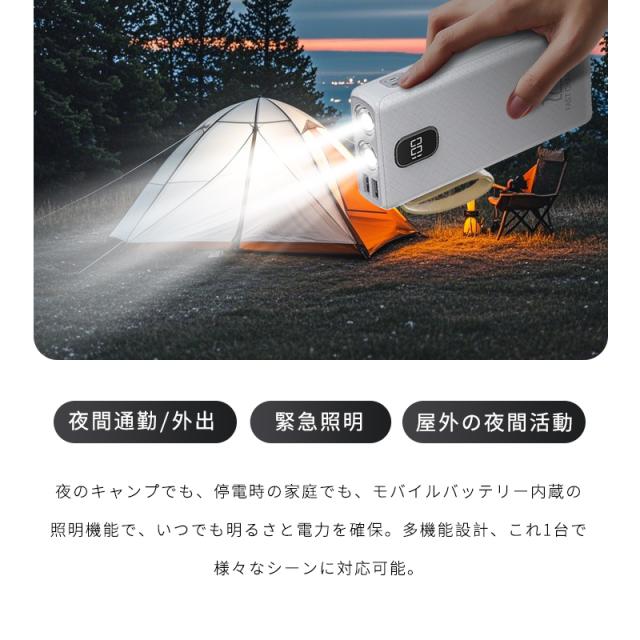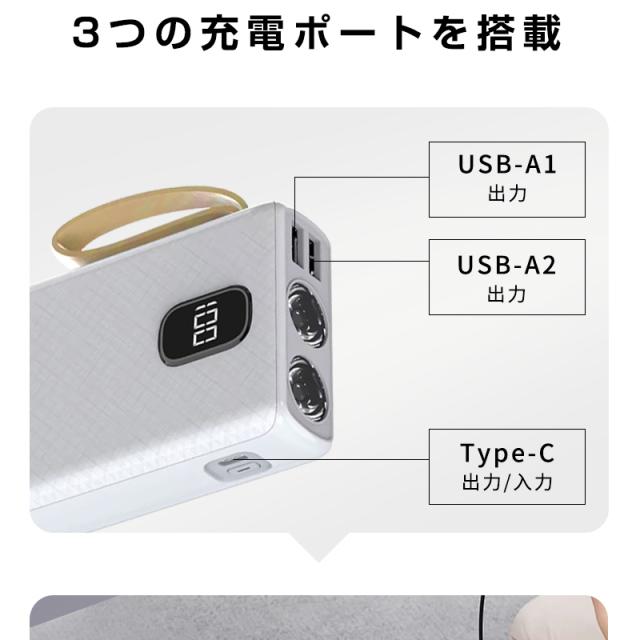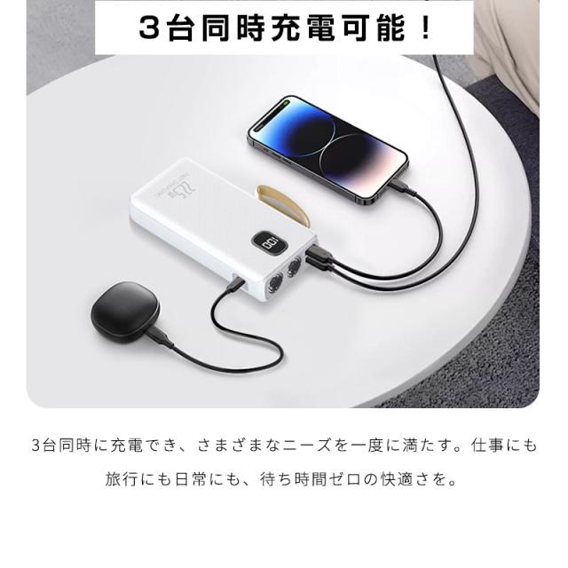 日常にもアウトドアにも、切れる不安からあなたを解放する大容量モバイルバッテリーです。LEDデジタル表示で残量がひと目でわかり、最大3台のデバイスを同時に高速充電。高品質ポリマー電池採用で、安全性と携帯性も追求しました。本製品は、大容量・多機能・高安全性を兼ね備えた、現代のモバイルライフに不可欠なアイテムです。LEDデジタル表示によるわかりやすさ、3台同時充電の利便性、そして洗練されたデザインが、日々の生活をより快適にします。