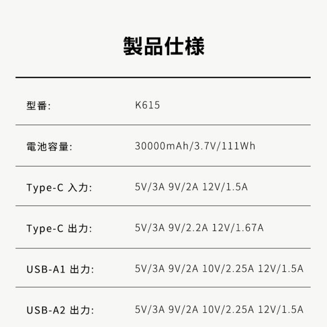 USB-A2出力:5V/3A 9V/2A 10V/2.25A 12V/1.5A