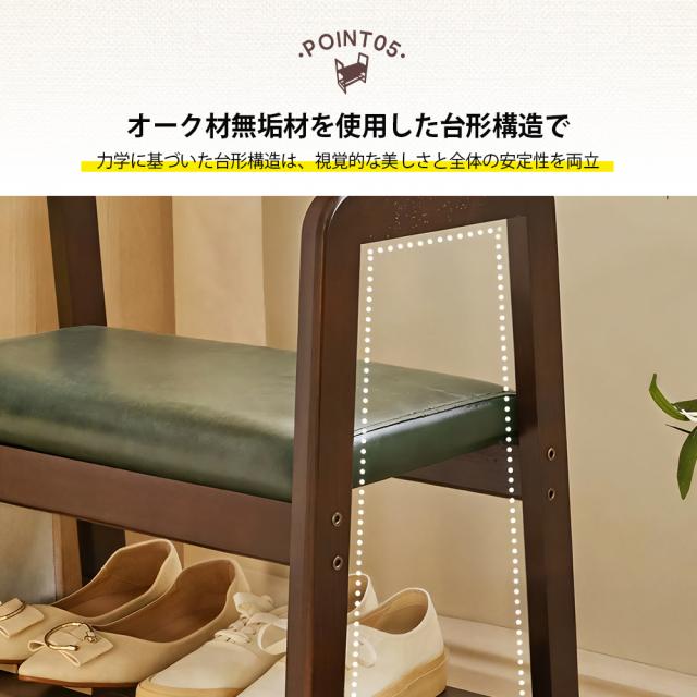 玄関ベンチ シューズラック 靴履き替え 椅子 オーク材 無垢材 高齢者 立ち上がり サポート 安定 おしゃれ シューズラック 省スペース ベンチソファ スリッパラック