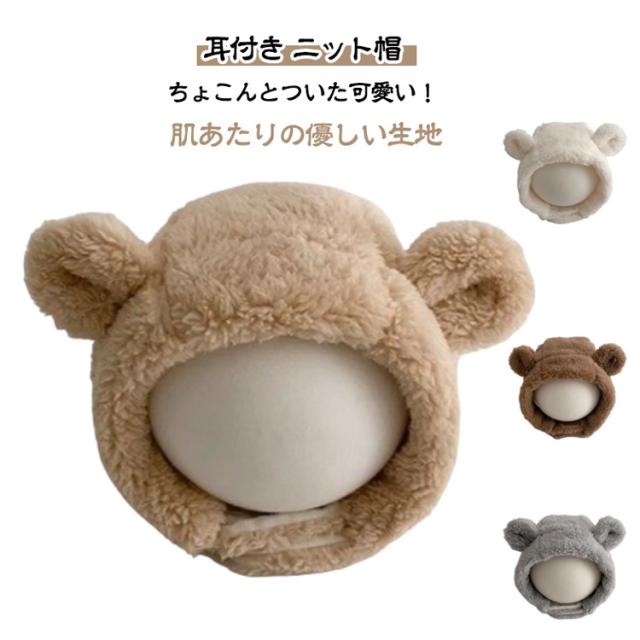 防寒 キッズ 耳付き ニット帽 ベビー アニマル帽子 帽子 もこもこ くま 赤ちゃん あったか 秋冬 衣装 仮装 ハーフバースデー お出かけ 冬小物 かわいい 出産祝い ギフト