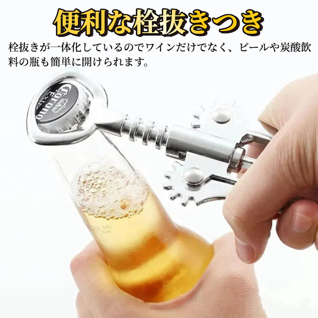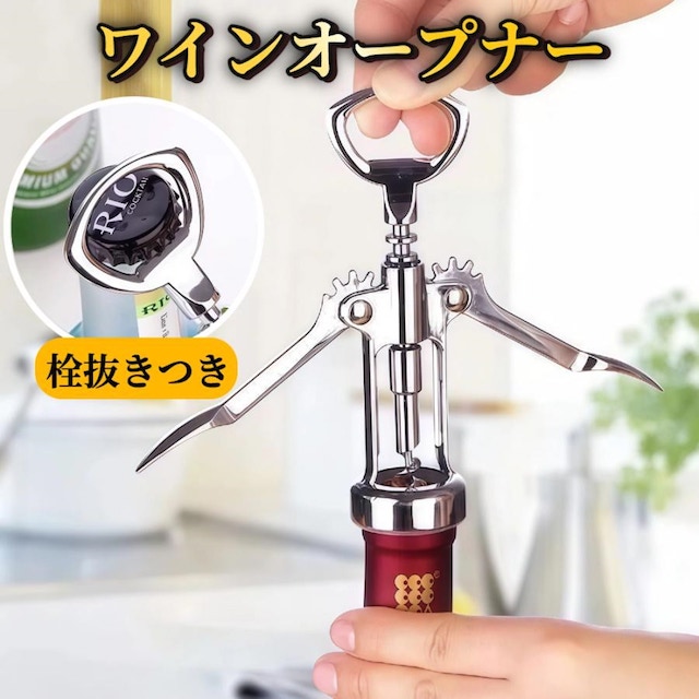 ワインオープナー ウィング型コルク抜き 【ハレゾラTBP公式店】 栓抜き コルク抜き ワインコルク抜き ボトルオープナー ペットボトルオープナー 多機能 ボトルオープナー 缶 瓶蓋開け ビール 飲料缶 調味料 おしゃれ 蓋開け お酒栓抜き 誕生日 プレゼント●