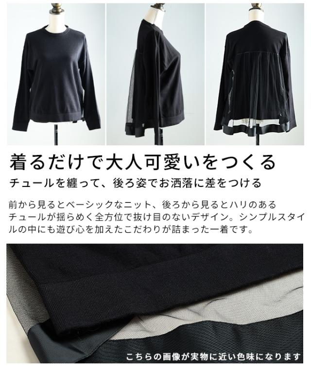 冬新作 後ろ姿も美しく魅せるバックチュールニットプルオーバー レディース ファッション トップス ニット セーター ブラック 冬服 大人可愛い 20代 30代 40代 レディースファッション カジュアル 体型カバー おしゃれ きれいめ ママ アラモード alamode almam-3010