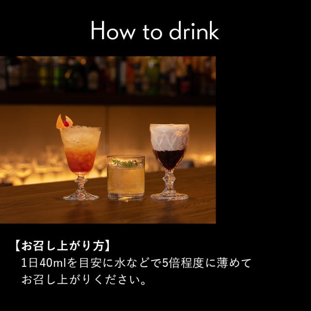 | お召し上がり方 | 1日40mLを目安に水などで5倍程度に薄めてお召し上がりください。 |