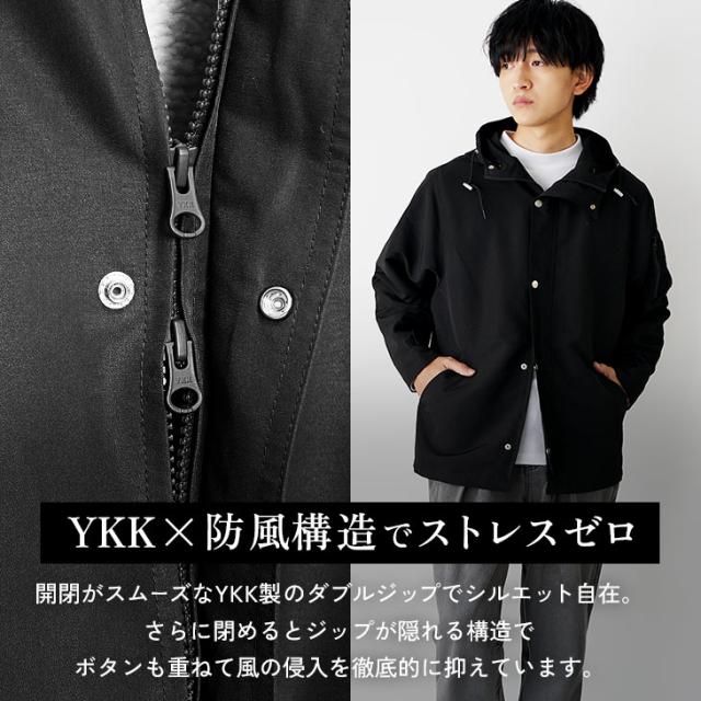 パーカー部分はナイロンを裏地には起毛がかったボア素材を使用し、暖かく着用できるアイテム。ジップは滑らかさが特徴のYKKジップを使用し、上からボタンで閉じてジップを隠せる仕様に。他にも袖のマジックテープや首を包み込めるスタンドネックなど冷気をシャットアウトできるアイテムです。