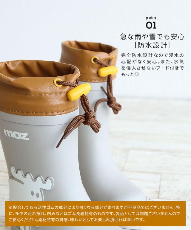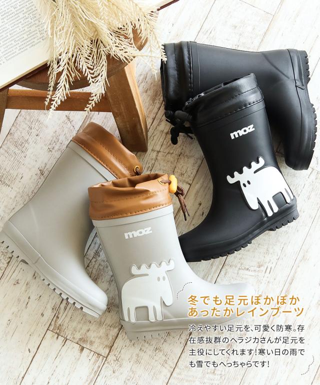 モズ moz スノーブーツ キッズ 防水 子供 レインブーツ 女の子 男の子 暖か 防寒 長靴 雪 北海道 防滑 フード付き ラバーブーツ レインシューズ 子供靴 人気 アウトドア ブーツ おしゃれ 歩きやすい あったか 通園 通学 雪遊び 反射材 黒 ブラック アイボリー