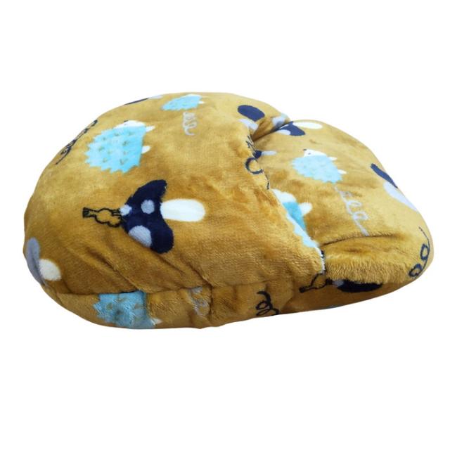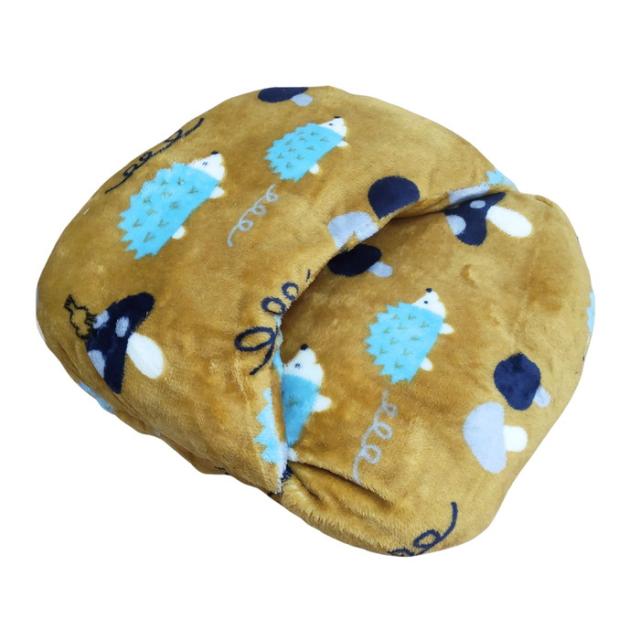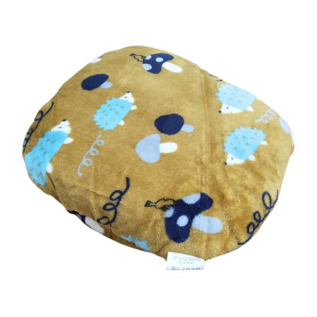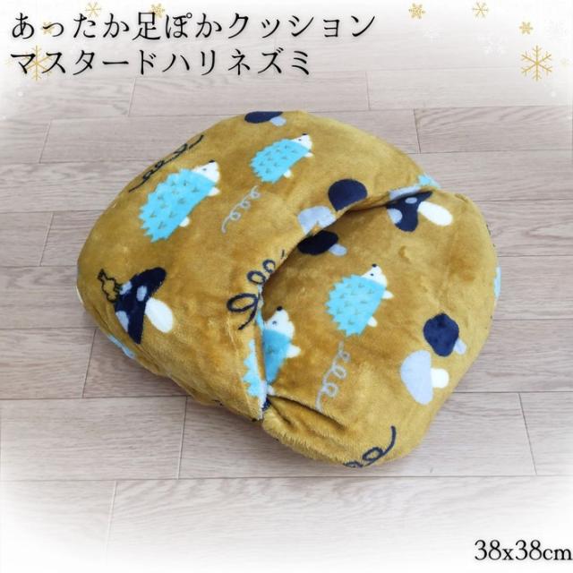 あったか足ぽかクッション かわいいハリネズミ柄 マスタード色 38x38cm 冷える足元を暖かく 冬用 フランネル ふっくらふかふか