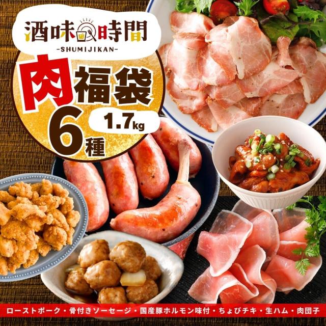おつまみ 肉 福袋 6種 1.7kg 骨付き ソーセージ ちょびチキ 豚 ホルモン ローストポーク 生ハム 肉だんご セット 詰合せ 業務用 あらびき ウインナー 唐揚げ チキン 国産 味付 冷凍 惣菜 食品 ビール お酒 お弁当 おかず 骨付 BBQ おでん 酒味時間 クリスマス お歳暮 のし対応