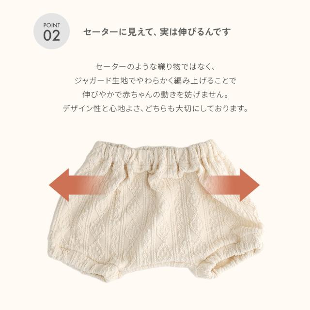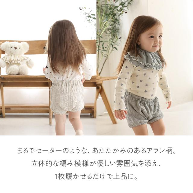 日本製 秋冬 冬用 アラン柄 かぼちゃパンツ ベビー服 長袖 60 70 80 90 肌着 保育園着 幼稚園 入園 通園 子供服 女の子 かわいい 男の子 赤ちゃん おしゃれ シンプル 新生児 コットン 綿 出産準備 出産祝い