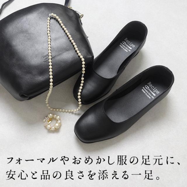 Recipe 3cmヒール ベーシック プレーン パンプス RP-559 日本製 / パンプス ローヒール フォーマル 結婚式 黒 疲れない 本革 40代 50代 60代 歩きやすい 3センチヒール 柔らかい 本革 お呼ばれ オフィス 仕事 通勤 卒業式 入学式 立ち仕事 革靴 シンプル レシピ