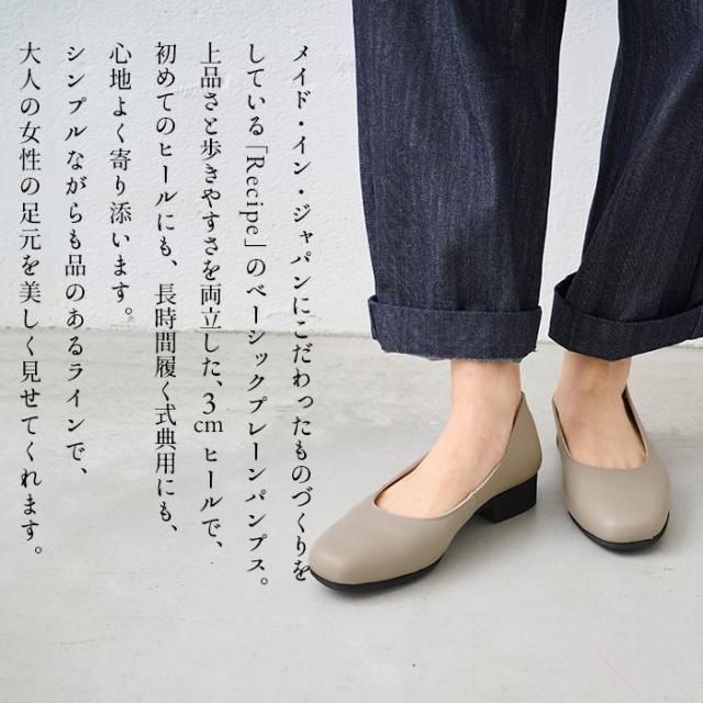 パンプス ローヒール フォーマル 結婚式 黒 疲れない 本革 Recipe 3cmヒール ベーシック プレーン パンプス RP-559 日本製 40代 50代 60代 歩きやすい 3センチヒール 柔らかい 本革 お呼ばれ オフィス 仕事 通勤 卒業式 入学式 立ち仕事 革靴 シンプル レシピ 冠婚葬祭 ベーシック 軽量 快適 靴 黒 シューズ ブラック グレージュ