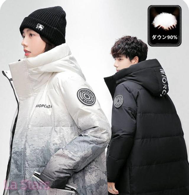 フード付きダウンコート メンズ レディース ユニセックス ペアルック アウターコート ダウンジャケット ロング丈 ビジネス ダウンコート 上質 撥水 厚手 アウター 冬服 通勤 防寒着 男性用/女性用 ダウンジャケット 着痩せ 大きいサイズ