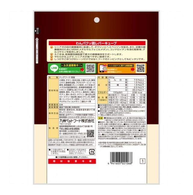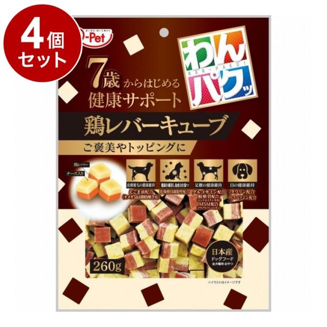 【4個セット】 九州ペットフード わんパクッ 7歳からはじめる鶏レバーキューブ 260g