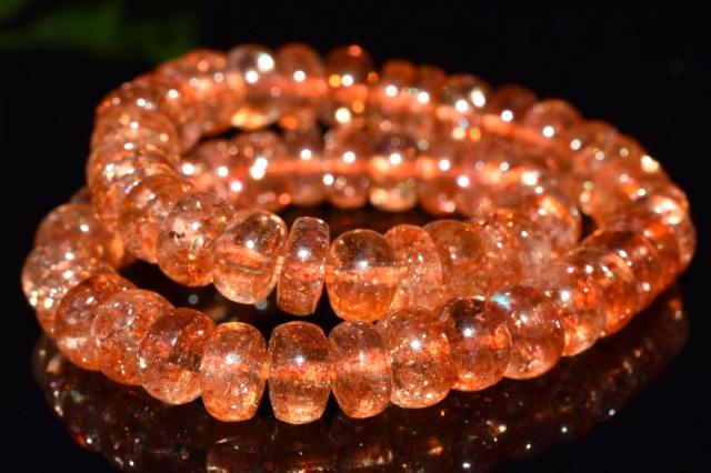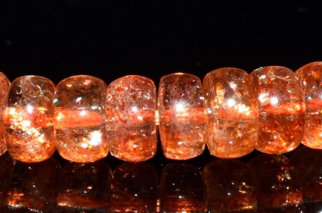 | 特徴・意味 | キラキラと煌めくアベンチュレッセンスの光が、太陽の輝きの様です。 まるで、光のシャワーが降り注いでいるかのような幻想的な気持ちになれます。 小粒でも輝きが存在感を放つおすすめのアイテムです。 オレンジマイカサンストーンとは、半透明のサンストーンの中に、オレンジのインクルージョンが入っているパワーストーンで、隠れた才能を引き出し、新しい縁を引き寄せ、目標達成に効果のあるパワーストーンだと言われています。 |