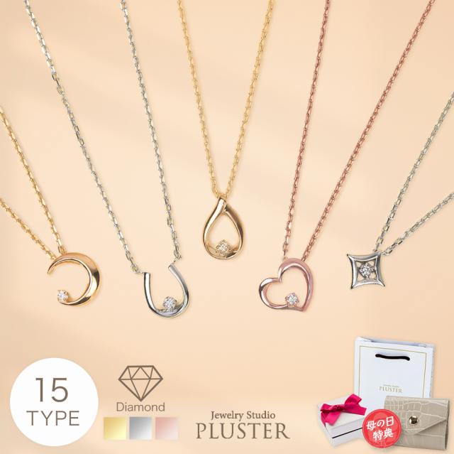 ダイヤモンド ネックレス レディース 馬蹄 ホースシュー しずく ドロップ ハート 月 一粒 シルバー ゴールド プラチナ シンプル 華奢 ブランド ジュエリー アクセサリー 誕生日 プレゼント 母の日