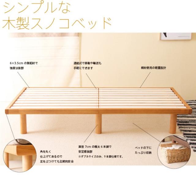 【主材】フレーム:天然木桐材(無垢) 、丸脚:天然木パイン集成材、スノコ:ポプラ積層合板