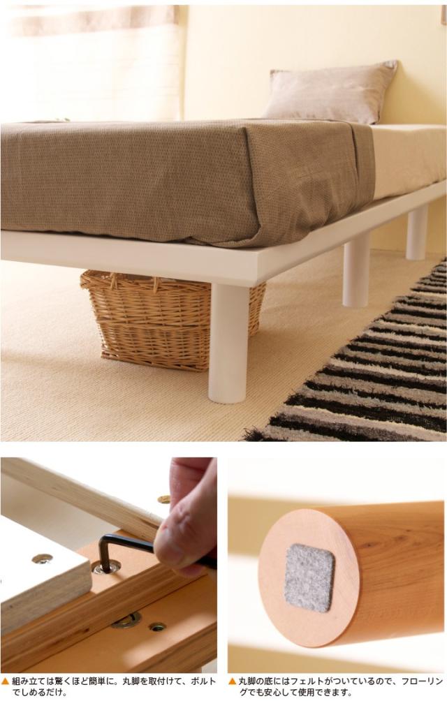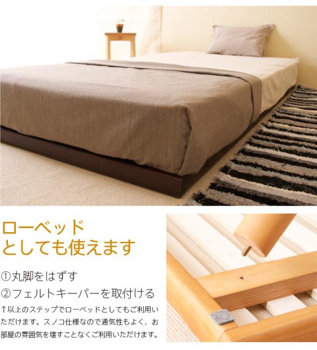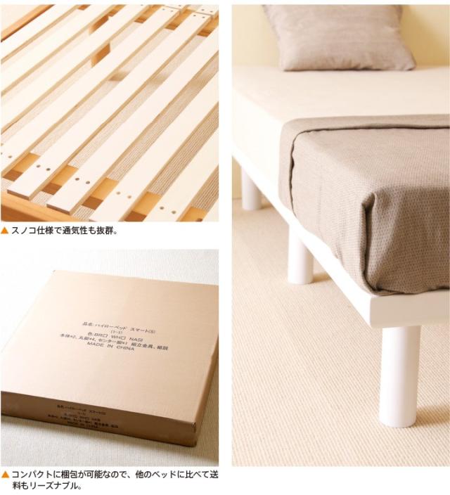 木製「ハイローベッド smart(スマート)シングルサイズ(S)」 組立簡単 すのこベッド ベッドフレーム 天然木 ヘッドレス 石崎家具