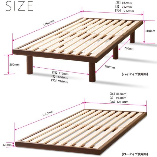 【SD】 セミダブル ハイベッド時 W1212×D1960×H310(重さ:約27kg) ローベッド時 W1212×D1960×H60