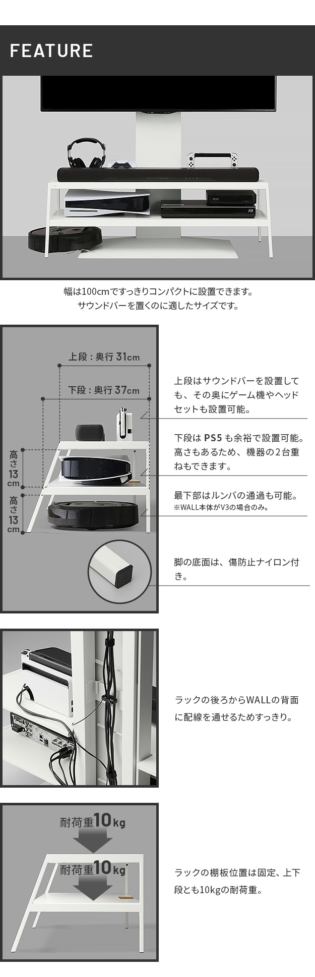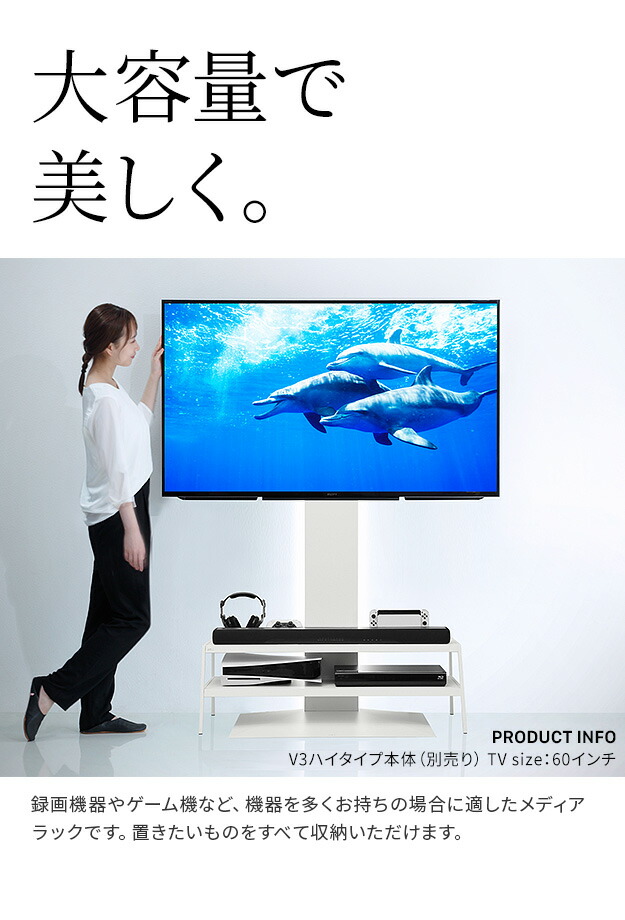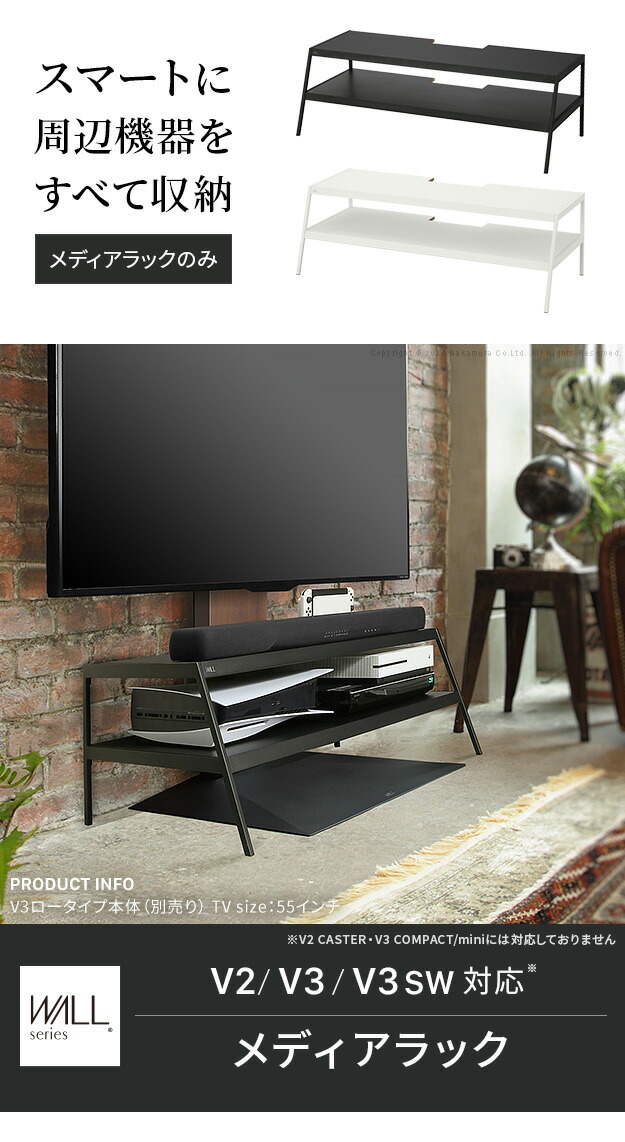 WALL V2・V3対応メディアラック 収納家具 スチール BDレコーダー PS5 プレステ5 PS4 サウンドバー ケーブルすっきり モダン おしゃれ WALLシリーズ 白 ホワイト 黒 ブラック