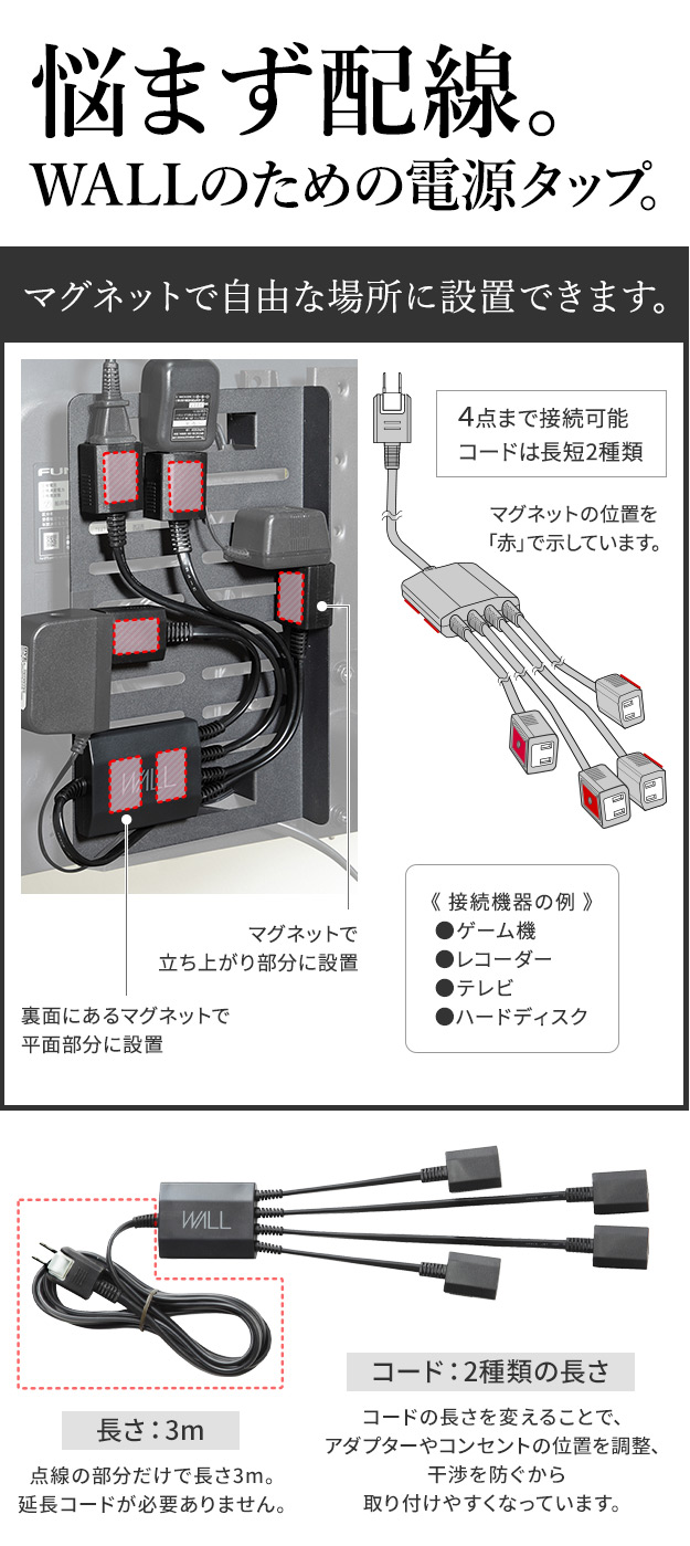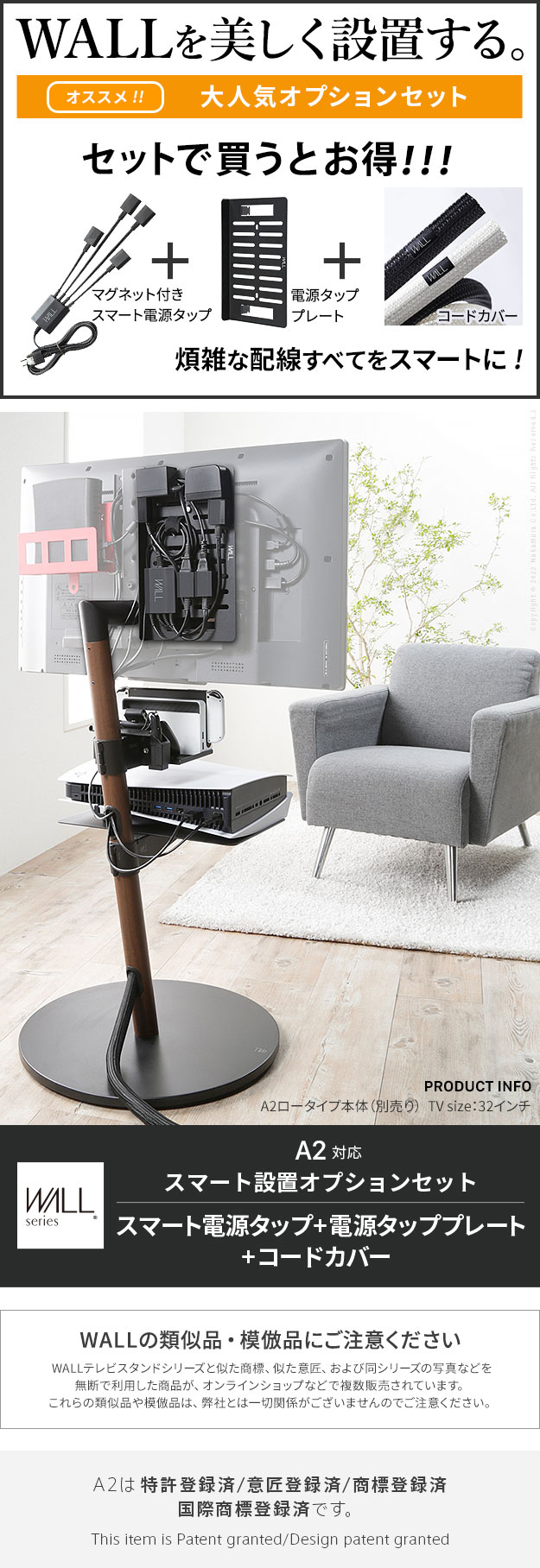 WALLインテリアテレビスタンド スマート設置オプションセット -スマート電源タップ -コードカバー -電源タッププレート 追加オプション 部品 パーツ 配線整理 配線カバー ケーブルカバー 配線隠し モダン おしゃれ WALLオプション