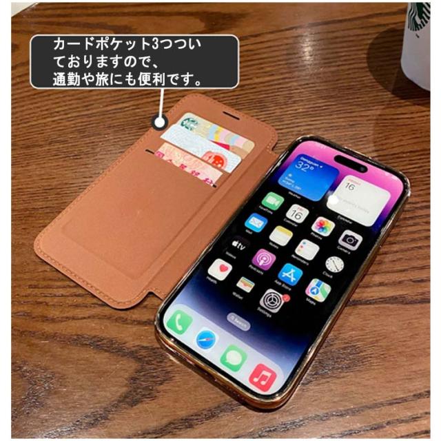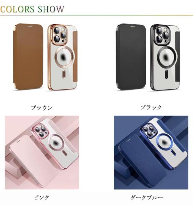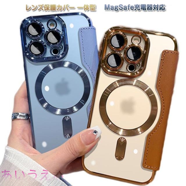 | 【レンズ保護カバー 一体型】【MagSafe充電器対応】【高級感メッキカバー】 Magsafe対応 手帳型ケース。 強い耐衝撃タイプ、キズを防ぎ、軽微な振動や衝撃から守ります。 柔らかい素材で、取り付きもしやすいので、本体に傷つけにくい。 ケースを装着した状態でのワイヤレス充電に対応できます。 背面は透明度が長期間持続し、iPhoneのオリジナルのデザインを活かすことができます。 カードポケット3つついておりますので、通勤や旅にも便利です。 カメラレンズ保護フィルムー体型。ケースとカメラレンズフィルムが一体なのでカメラレンズに直接傷や汚れが付かない。除間からのホコリの侵入も防ぐ。 | |