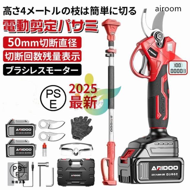剪定ばさみ ARIDOO 電動 高枝切りバサミ 充電式 4.0Ahバッテリ 切断直径50mm 200cm延長ポール 電動ハサミ ブラシレスモーター 枝切り 電池残量 軽量 果樹 庭 園芸用 家庭用