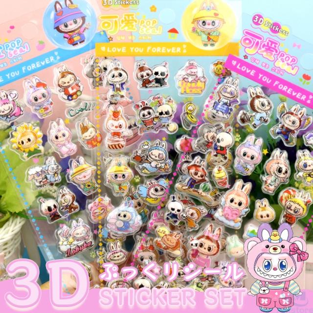 シール ラブブ 3Dシール 3枚セット ぷくぷくシール ごほうびシール かわいい ぼんぼんシール 子供 幼児用 3Dシール 手帳 ご褒美シール 日記 デコシール パンダ 立体 キラキラ 装飾 アルバム スマホ ケース 飾り 可愛い ステッカー DIY