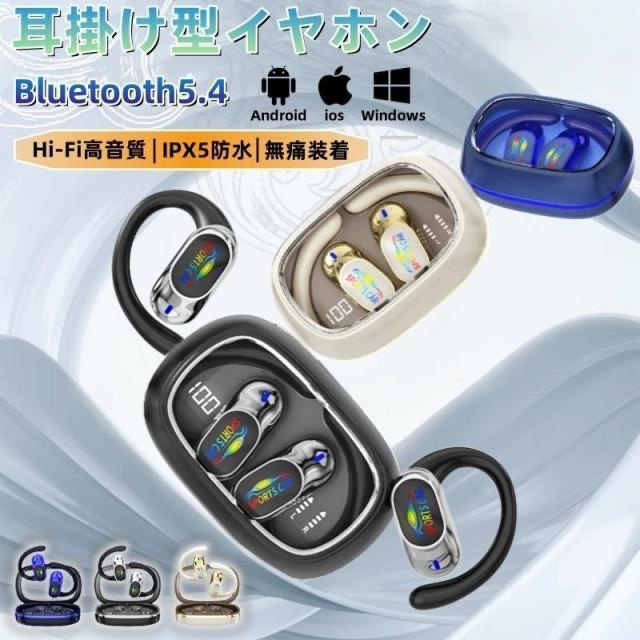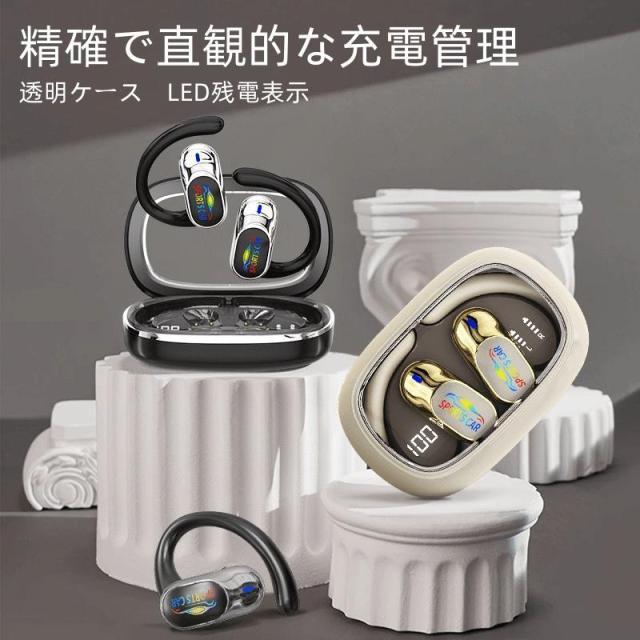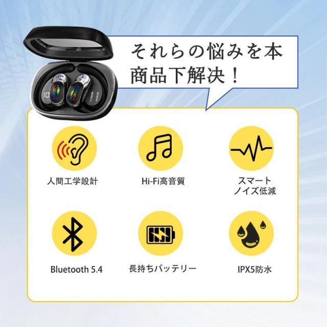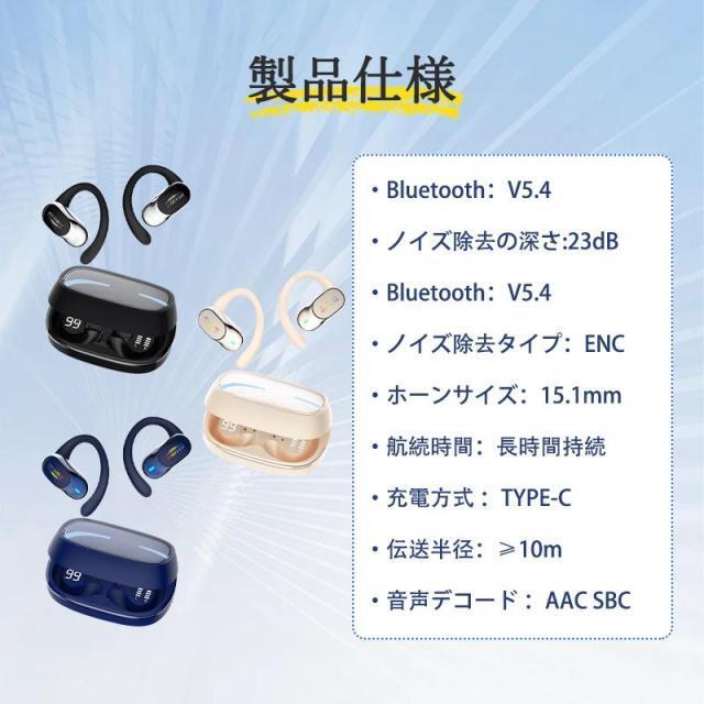 ワイヤレスイヤホン 耳掛け型 イヤホン Bluetooth5.4 無痛装着 残電表示 高音質 クリア通話 回転でき 音漏れ防ぐ IPX5防水 AAC/SBC ENCノイズキャンセリング
