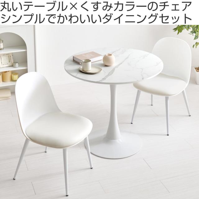 《 LH20065 ダイニング チェア 食卓 セット 2人 二人掛け 小さめ チェアー いす 机 食卓机 食事 作業 仕事 勉強 リビング オシャレ お洒落 モダン スタイリッシュ インテリア 家具 ホワイト 大理石調 白 メラニン素材 丸テーブル 》