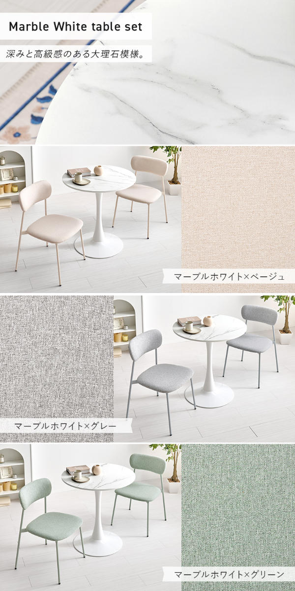 《 LH20065 ダイニング チェア 食卓 セット 2人 二人掛け 小さめ チェアー いす 机 食卓机 食事 作業 仕事 勉強 リビング オシャレ お洒落 モダン スタイリッシュ インテリア 家具 ホワイト 大理石調 白 メラニン素材 丸 テーブル コーヒーテーブル 直径70 省スペース 作業スペース ファブリック くすみカラー 》