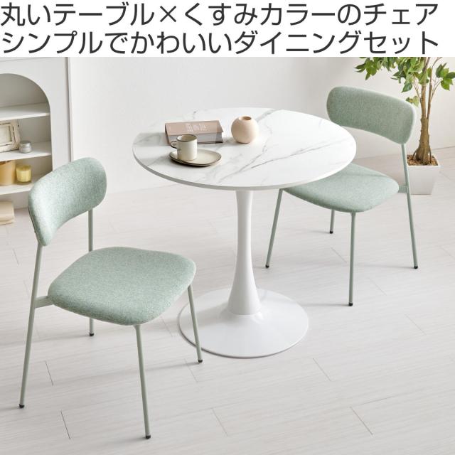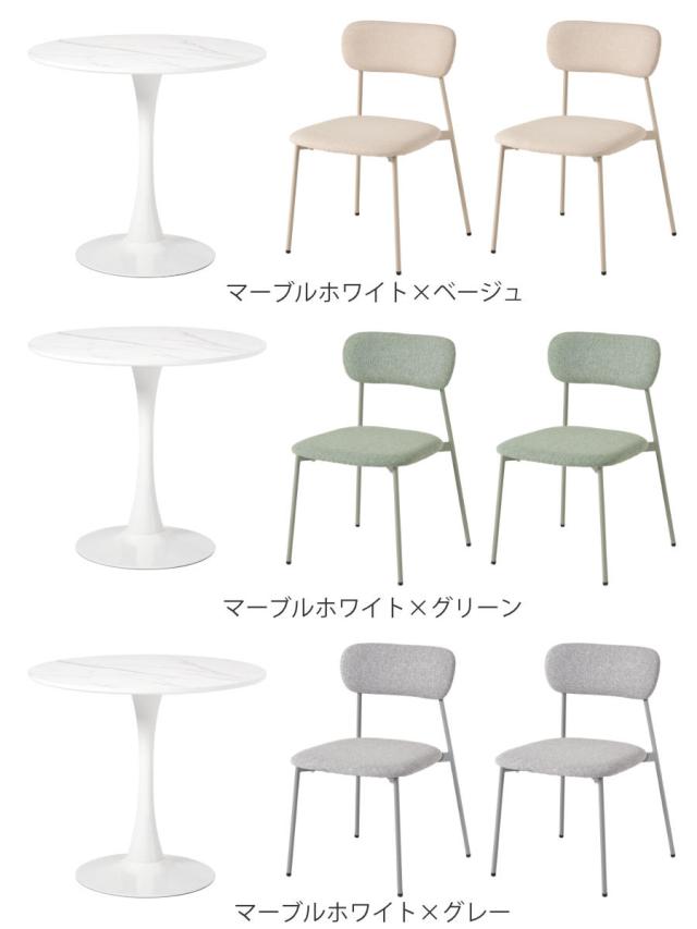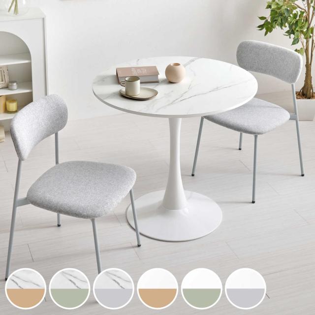 《 LH20065 ダイニング チェア 食卓 セット 2人 二人掛け 小さめ チェアー いす 机 食卓机 食事 作業 仕事 勉強 リビング オシャレ お洒落 モダン スタイリッシュ インテリア 家具 ホワイト 大理石調 白 メラニン素材 丸 テーブル コーヒーテーブル 直径80 作業スペース ファブリック くすみカラー 》