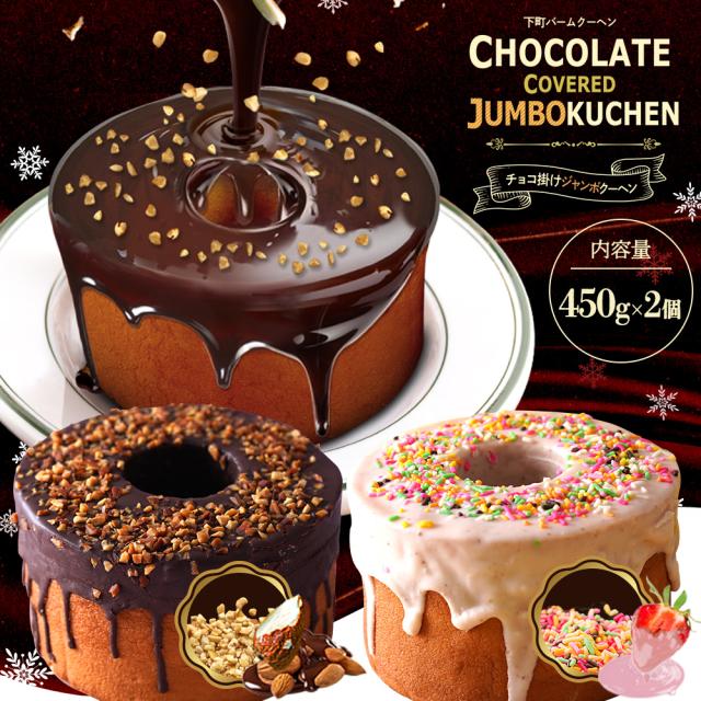 超ド級1個450g チョコがけスーパージャンボクーヘン2個(450g×2) チョコアーモンド ストロベリースプリンクル 沖縄へのお届けは追加送料1000円が発生致します! チョコレート 2026 下町バームクーヘン バームクーヘン 送料無料 ギフト プレゼント