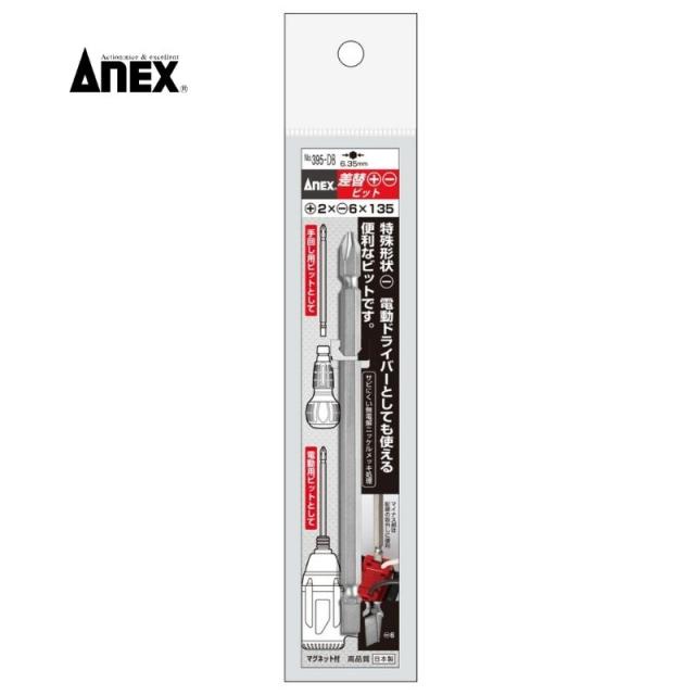 兼古製作所 No.395-DB ANEX プラス・マイナス両頭ビット +2×-6×135mm 1本入 先端マグネット付 6.35mm六角軸