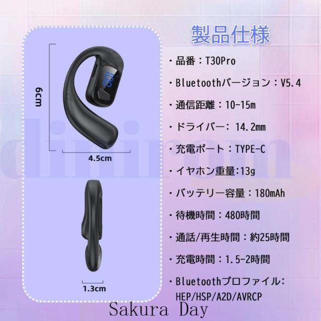 ワイヤレスイヤホン bluetooth5.4 iPhone ブルートゥースイヤホン 耳掛け式 超軽量13g 耳が痛くない 片耳 両耳 HiFi 高音質 防水 長持ち ios android 最新型