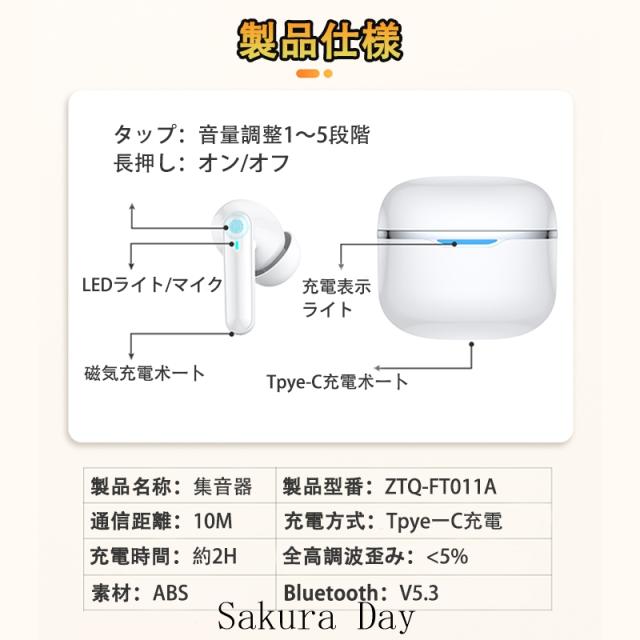 即日発送 集音器 高齢者 イヤホン型 ワイヤレス 補聴器 口コミ 使いやすい 小型 デジタル両耳 片耳 ハウリングなし抑制 軽量 USB充電式 Bluetooth機能搭載 操作簡単 両親 高齢者用 おすすめ 敬老の日 家族プレゼント
