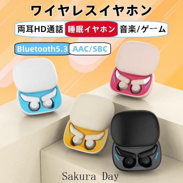 ワイヤレスイヤホン Bluetooth5.3 イヤホン 睡眠用 昼夜兼用 寝返り痛くない 高音質 ブルートゥース 片耳 両耳 AAC/SBC 小型 軽量 睡眠遮音 IPX6防水 左右兼用
