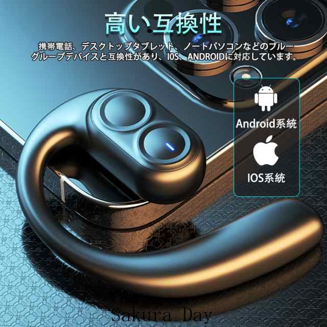 骨伝導イヤホン ワイヤレスイヤホン 片耳 Bluetooth5.4 コードレスイヤホン 音漏れ防ぐ スポーツ Hi-fi 超軽量 超長待機 耳掛け式 通勤通学 プレゼント agesugi_ssm