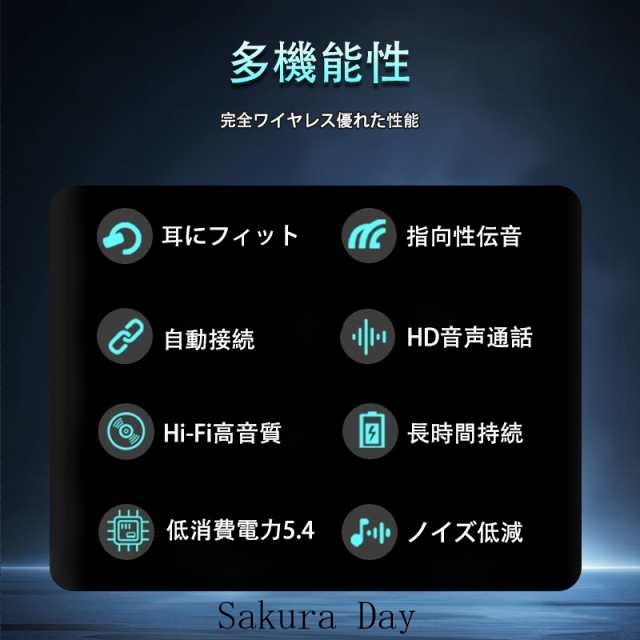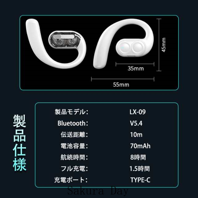 関連キーワード:完全ワイヤレスイヤホン 究極のフィット感 オープンイヤー Bluetooth5.4 マイク付き iPhone/Android適用 Type-C充電 パワフルな低音 IPX7防水性能 最大8時間利用可能 耳を塞がない 簡単操作 ホワイト ブラック スポーツ 音楽 ゲーム Hi-Fi音質 自動ペアリング タッチコントロール