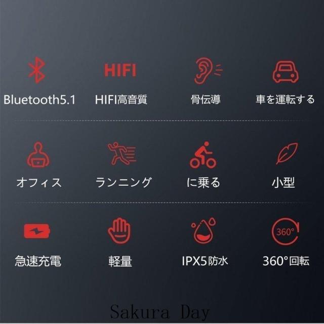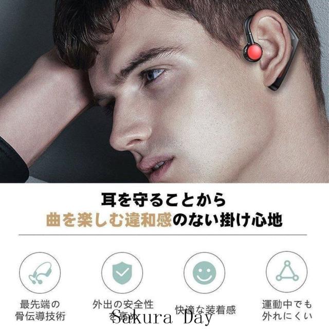 即日発送 骨伝導イヤホン Bluetooth5.1 片耳掛け 3g超軽量 マイク付き ヘッドホン ブルートゥースイヤホン IPX5防水 Hi-Fi高音質 無線イヤホン iPhone Android適用 ギフト agesugi_ssm