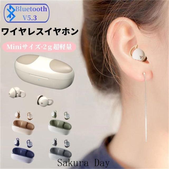 即日発送 ワイヤレスイヤホン 寝ながらイヤホン Bluetooth5.3 2g超軽量 小型 ブルートゥース 高音質 Hi-Fi 超軽量 防塵 左右分離 CVCノイズキャンセリング コンパクト 通学通勤 プレゼントに最適