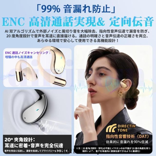本耳掛け式ワイヤレスイヤホンは超大型14.2ミリドライバーを内蔵しており、圧倒的な高音質を実現しています。低音域から高音域のバランスが抜群で、透き通るようなクリアサウンドを再生でき、1つ1つの音に存在感があり、コンサートホールで生演奏を聴いているかのような迫力を味わえできます。ENCノイズキャンセリング機能搭載、またマイク内蔵付き、通話中の雑音や周囲のノイズを抑制し、相手の声も聞き取りやすく快適な通話を実現します。