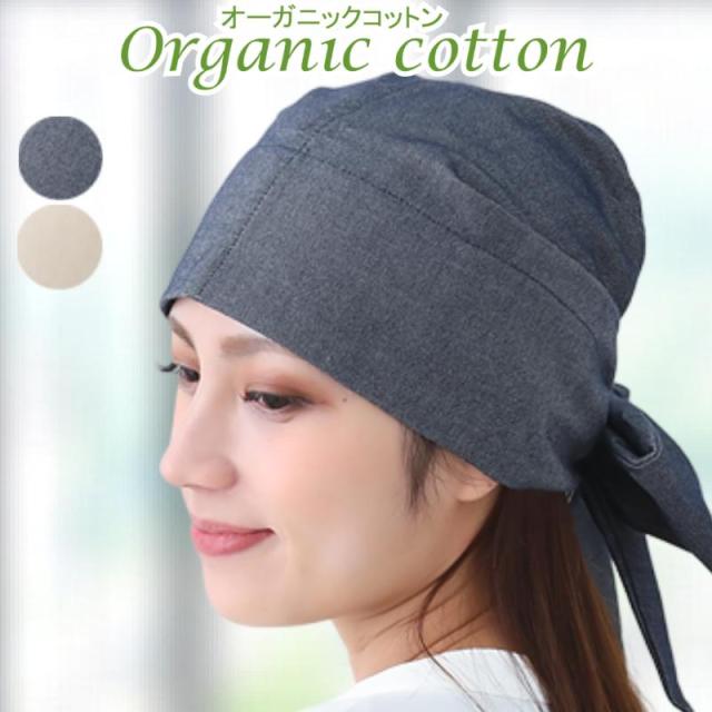 医療用帽子 デニム バンダナキャップ オーガニックコットン100% 綿100 レディース リボン付き かわいい おしゃれ ケア帽子 大きめリボン 小顔効果 抗がん剤 医療帽子 軽い レディース 脱毛 オーガニックコットン デニムバンダナゆったりフィット 帽子
