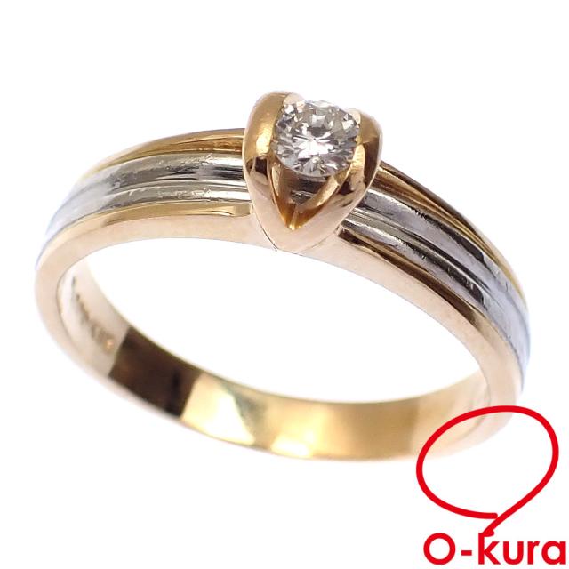 中古 ダイヤモンド リング レディース K18YG Pt900 10号 0.10ct 3.3g 指輪 750 18金 イエローゴールド プラチナ 一粒