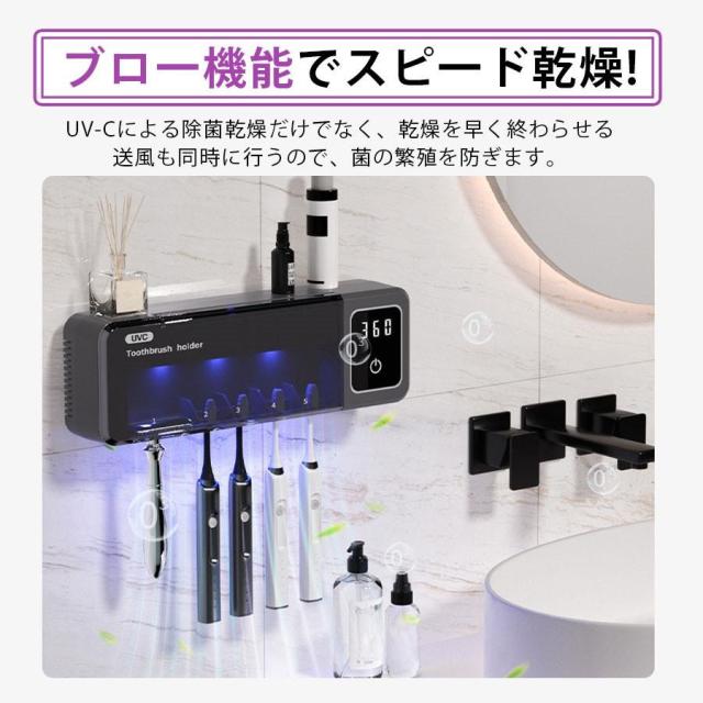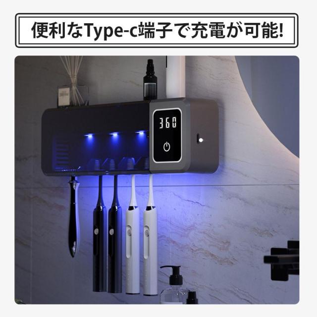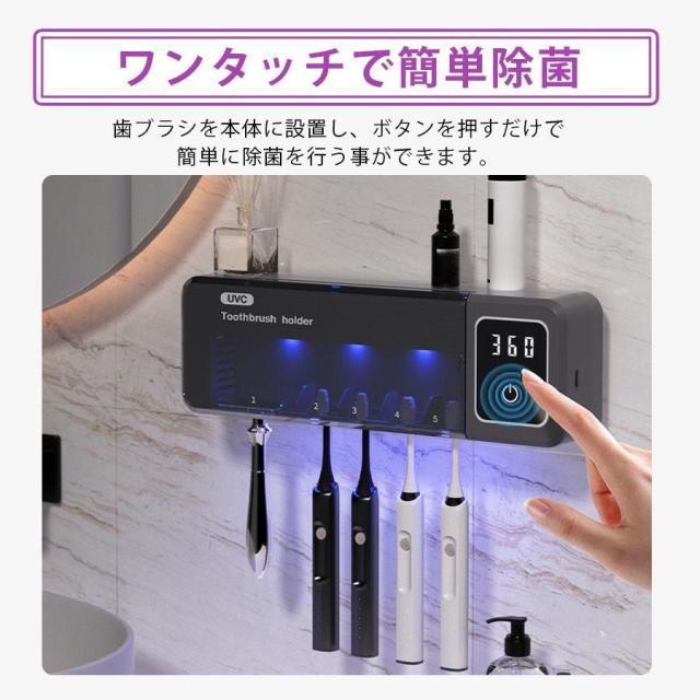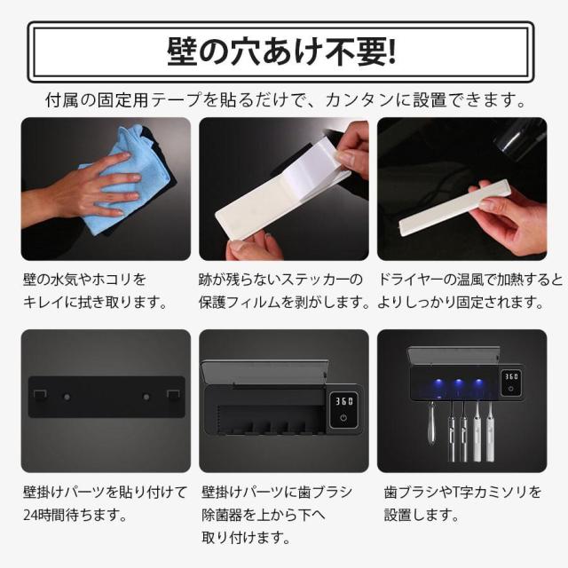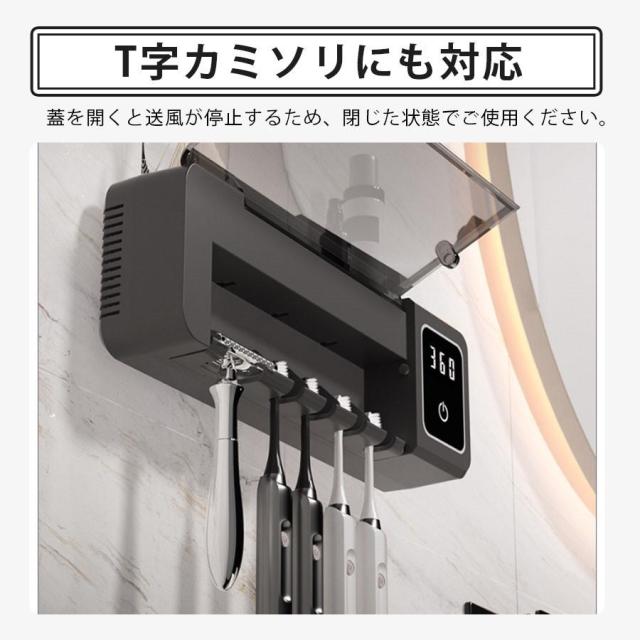 歯ブラシ除菌器 壁掛け 歯ブラシスタンド 充電式 UV除菌 自動タイマー 自動除菌 スピード乾燥 T字カミソリ 穴あけ不要 カビ防止 洗面所 衛生