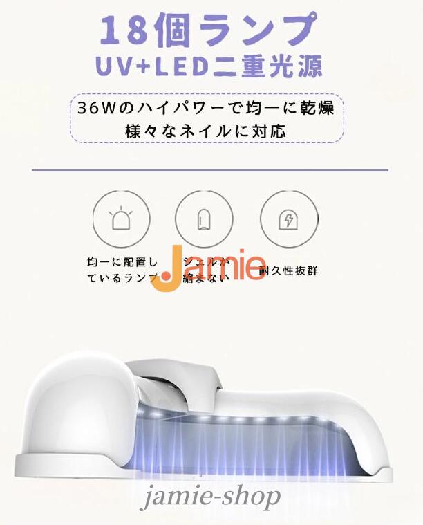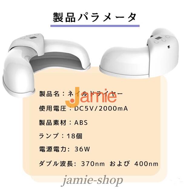 ネイル ライト UV+LED二重光源 36w ランプ18個 UV LED タイマー設定可能 折りたたみ式 ネイルジェル 高速硬化 高性能 ネイルライト uvライト ネイルドライヤー ジェルネイル USB対応 セルフネイル