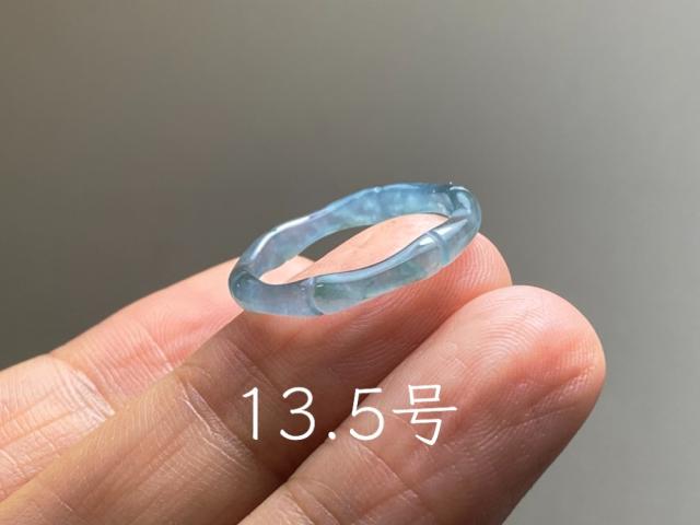 L15-72 氷種 竹節 リング 青色 13.5号 グアテマラ産 A貨 本翡翠 くりぬき